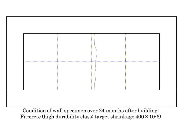 This proved that the drying shrinkage control method used in the concrete of the full-scale specimens was effective in reducing cracking in concrete. The new concrete was named Fit-crete (trademark application pending), and there are plans for further popularization.